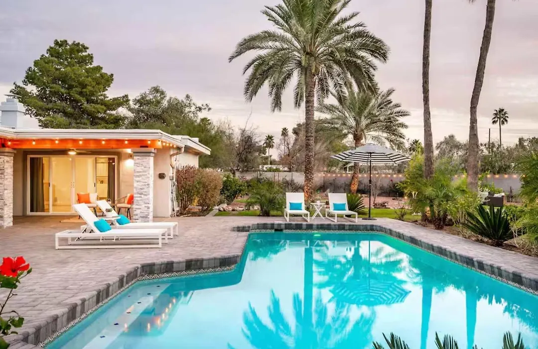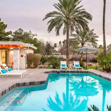 La villa Family Pool House Oasis With Game Room Phoenix, situada a 25 minutos a pie de los Condominios Bella Terra, cuenta con un patio con vistas a las montañas. Esta casa de vacaciones, que ofrece vistas a la piscina privada, invita a los huéspedes a visitar el Distrito de Arte de Main Street, situado a 4 km.